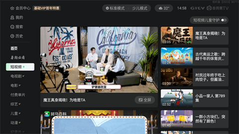 6、短视频专区,提供轻量级短内容,适合碎片化时间浏览,丰富家庭娱乐选择。