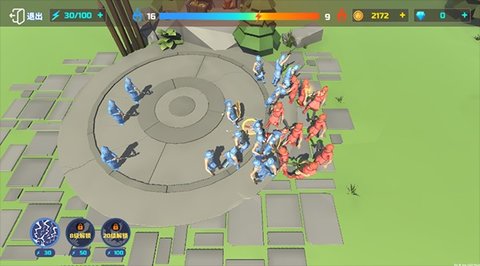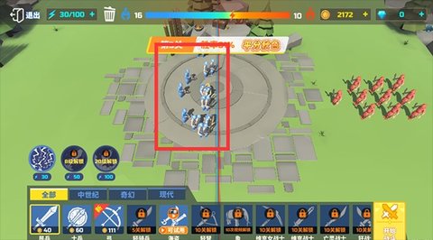 2、选定兵种后,可在地图指定的圆形部署区域内点击放置士兵。玩家可以根据战术需要,调整阵容的前后排分布、密集程度与站位布局,合理搭配兵种组合是取得胜利的关键。