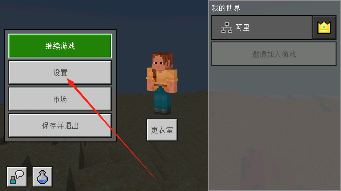 进入任意游戏世界后,点击屏幕上方的菜单按钮