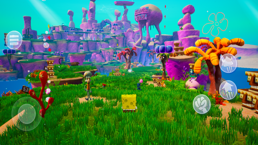 2、游戏以经典动画《海绵宝宝》为蓝本,倾力打造趣味十足的动作冒险游戏,众多动画角色原汁原味地呈现。