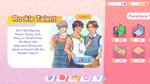 2、事务所自由装修,投入资源建设并装饰你的专属经纪公司,从练习室到休息区,每个细节都影响偶像状态与粉丝好感度。
